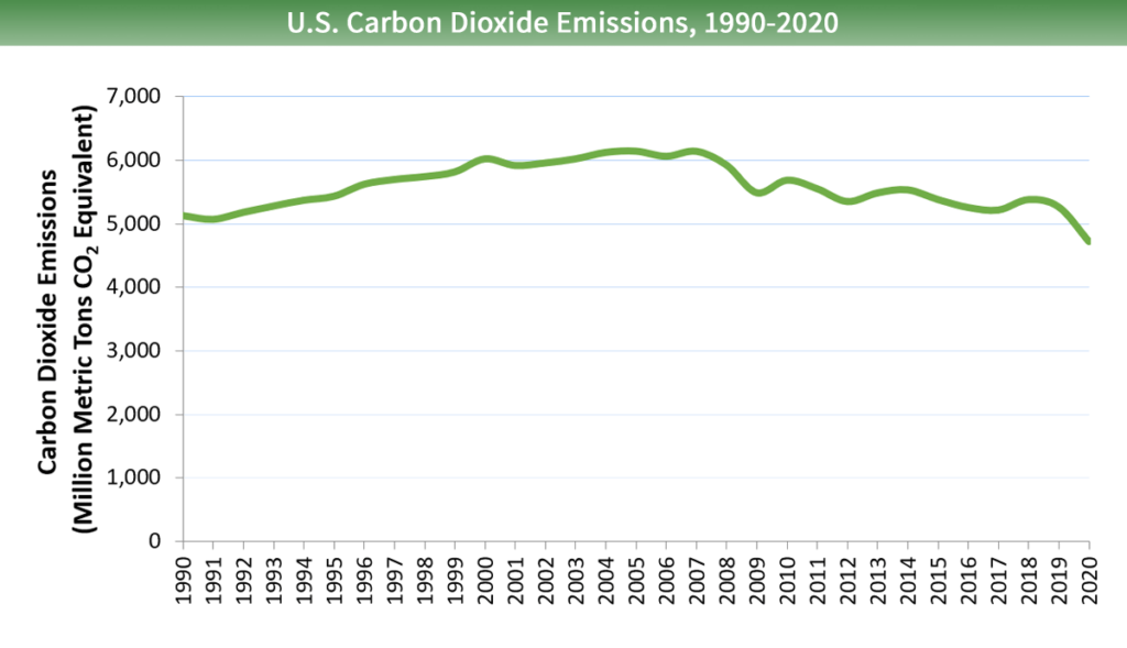 Figura 1. Emisiones de dióxido de carbono de EE.UU. para el período 1990-2020