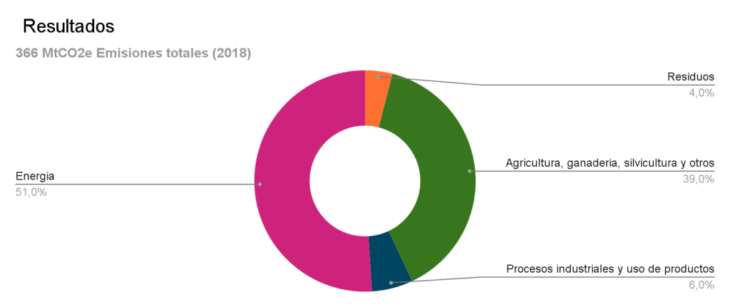 A continuación, se detallan los resultados de GEI de la República Argentina, correspondientes al cuarto informe bienal de actualización (IBA) elaborado en 2020-2021, donde se incluyeron todas las fuentes de emisiones y absorciones para las cuáles la información disponible permitió realizar una estimación acorde a los principios de calidad de elaboración del inventario. Las estimaciones fueron realizadas siguiendo las directrices del IPCC de 2008. (Ministerio de Ambiente y Desarrollo Sostenible ARG.)